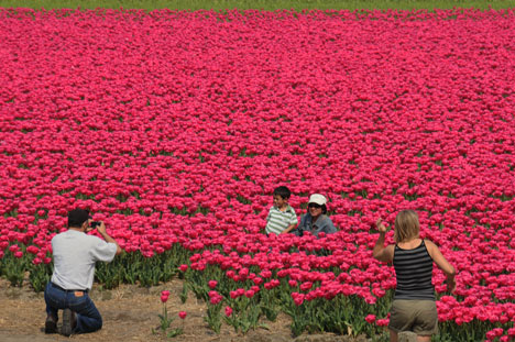 Ein wenig haben wir noch von dieser Blütenpracht gesehen. Die meisten Tulpen und die anderen Frühlingsblumen waren bereits "geköpft", um die Kraft der Pflanzen in die Knollen zu konzentrieren, die hier vermehrt werden. |