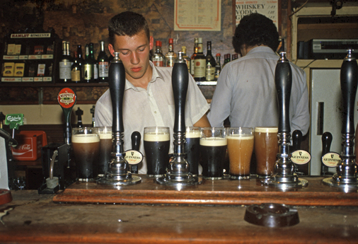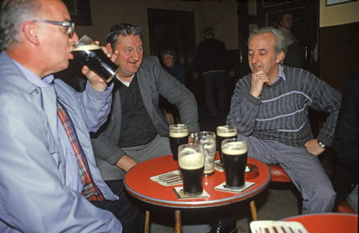 Viktorianischen Zeitalter zum sozialen Leben. Bei Guiness, dem berühmten dunklen Bier, oder einer der vielen anderen Sorten des Gerstensaftes, lässt sich vertieft über Gott und die Welt und Politik diskutieren. Besonders interessant waren damals Besuche in sgn. Singing Pubs. Hier wurden nämlich nicht nur irische Folksongs dargeboten, sondern vielfach auch (sehr heftige) politische Protestsongs. |