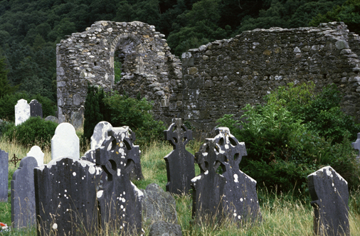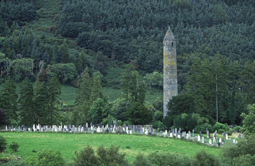Glendalough ("Tal der zwei Seen") ist ein Tal in den Wicklow Mountains, etwa 40 km südlich von Dublin. Hier sind die Reste einer der berühmtesten Klostersiedlungen Irlands zu sehen. Der Heilige Kevin zog sich im 6. Jahrhundert hierhin zurück,