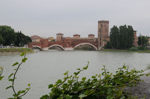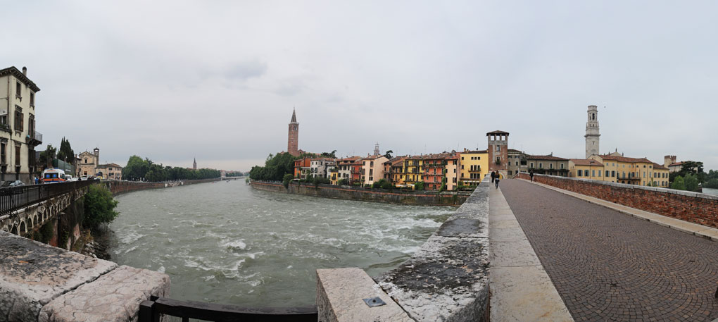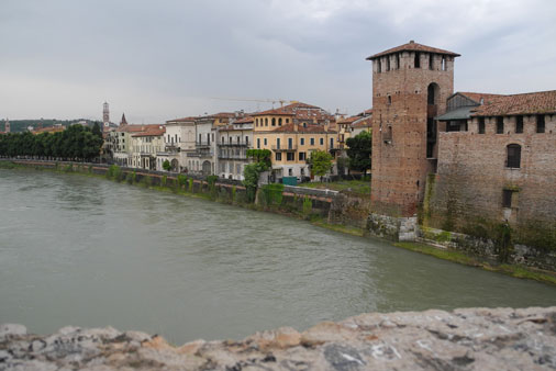 Ponte Pietra über die Etsch, der Wachturm, der Dom und die Basilika