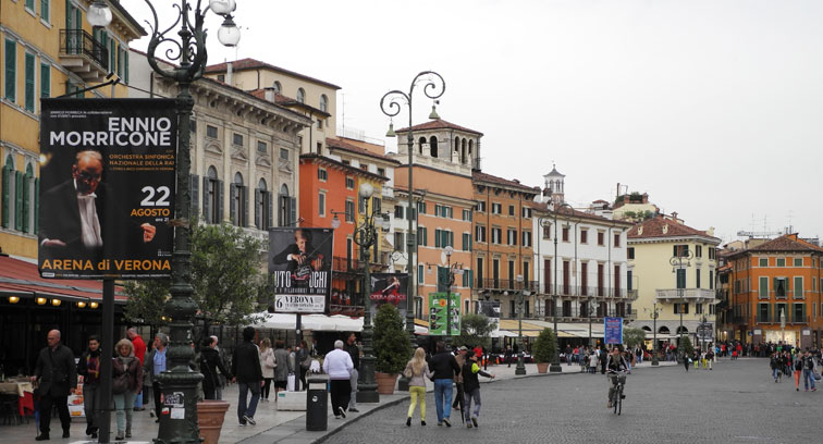 Die Piazza Bra (auf dem auch die Arena liegt) ist der größte Platz Veronas und gilt als einer der schönsten in ganz Italien. Interessant ist das Eingangstor Portoni della Bra mit dem achteckigen Turm.