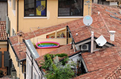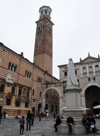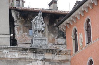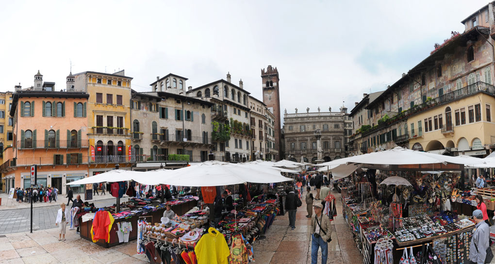 | Die Piazza delle Erbe ist ein Platz voller Leben. Zwischen den Pallazi ist der Markt, der heute vor allem Touristen anzieht. | |