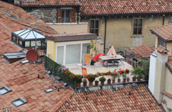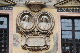 Beeindruckend an diesem Haus sind u.a. die Fresken unter dem Dach, die