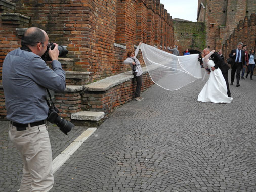 Gleich nach der Ponte Pietra taucht man ein in das historische Wirtschaftszentrum der Stadt.
