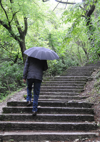 Früher einmal war er nur zu Fuß in mühsamer Wanderung erreichbar, später (16. Jahrhundert) über ein einfaches Windensystem, heute nimmt man eine Straße „von hinten her“ und hat dann nur mehr 400 Stufen bis zum Heiligtum (zurück auch wieder!). Das Heiligtum