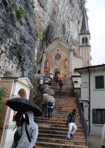 Das Ziel unserer Fahrt war Verona. Etwas mehr als 40 Kilometer davor sieht man von der Autobahn aus hoch oben in den Bergen (Monte Baldo) eine Kirche. Man liest, dass man diesen Wallfahrtsort einmal besucht haben sollte.