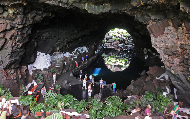 Unter den erkalteten Lavamassen finden sich Höhlen oder ganze Höhlensysteme. Einer dieser Hohlräume wurde von César Manriquezu einer Kultur- und Touristenstätte gestaltet. Auch hier hat er sein Anliegen verwirklicht, nämlich den Besuchern die Natur schonend nahezubringen und sie auch mit Kultur zu verbinden. Deshalb gibt es hier auch einen unterirdischen Konzertsaal. Im unterirdischen See lebt eine Albino-Krebsart, die sonst nur im Meer unterhalb von 2000 Metern vorkommt.