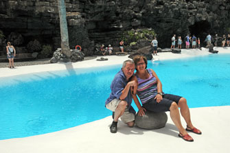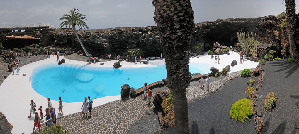 Auf der anderen Seite der Anlage kommt man zum weißen Schwimmbecken, um das seltene und teils endemische Pflanzen wachsen. Früher durfte man hier sogar baden. Dahinter liegt der unterirdische Konzertsaal mit 600 Plätzen; über eine Steintreppe kommt man zum geologischen Museum, in dem die vulkanischen Vorgänge auf der Insel erklärt werden.