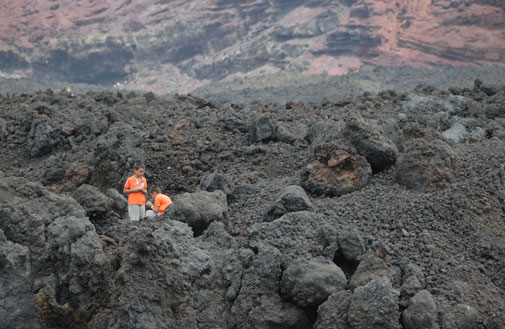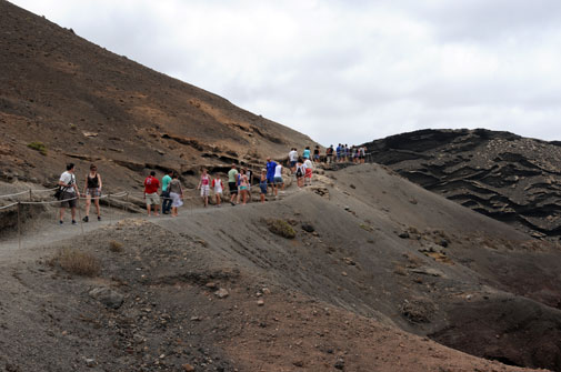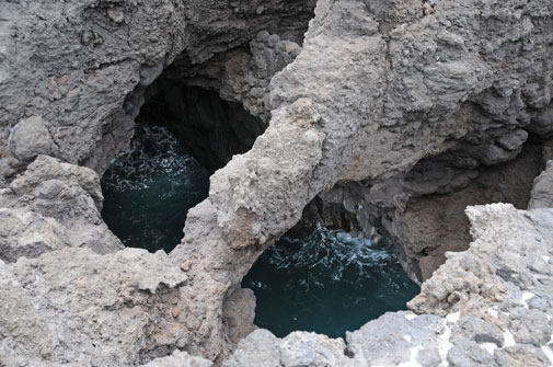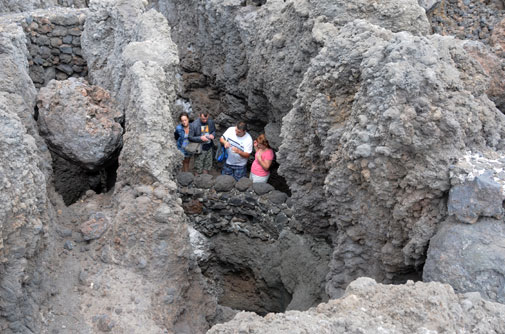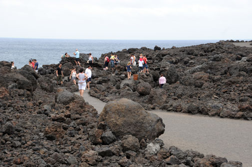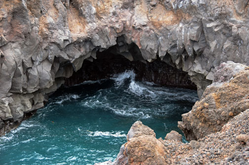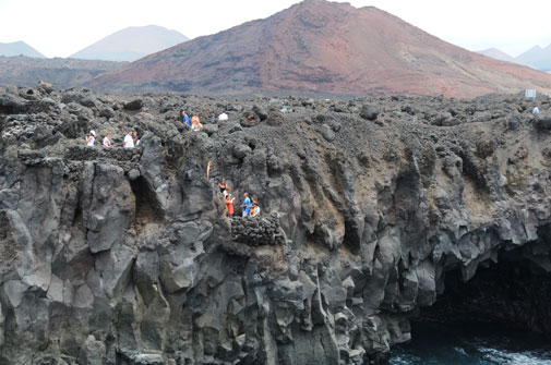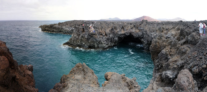 Los Hervideros ist ein bizarrer Küstenabschnitt, den man auf kleinen Wegen erkunden kann. Hier bearbeitet die Gischt (Hervideros = Sieden) des Meeres die Lavamassen, die von den letzten großen Vulkanausbrüchen von 1730 bis 1736 stammen.