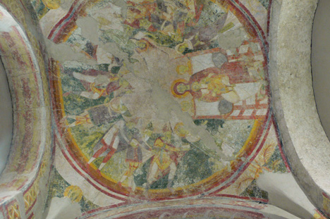 Die wohl bedeutendsten Kunstschätze des Lambacher Stiftes sind die romanischen Fresken, die um 1080 entstanden sind und als die ältesten romanischen Fresken im süddeutschen Sprachraum gelten. Sie gehören zur Dekoration des Westchores und der Krypta der ehemaligen romanischen Stiftskirche. |