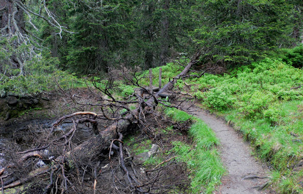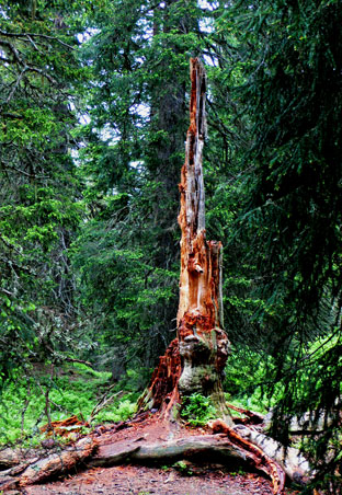 Hier erlebten wir Natur wie sie ist, wenn der Mensch nicht eingreift. Stürzt ein Baum um, darf er bleiben wo er ist, Für die Besucher wird ein Übergang errichtet.